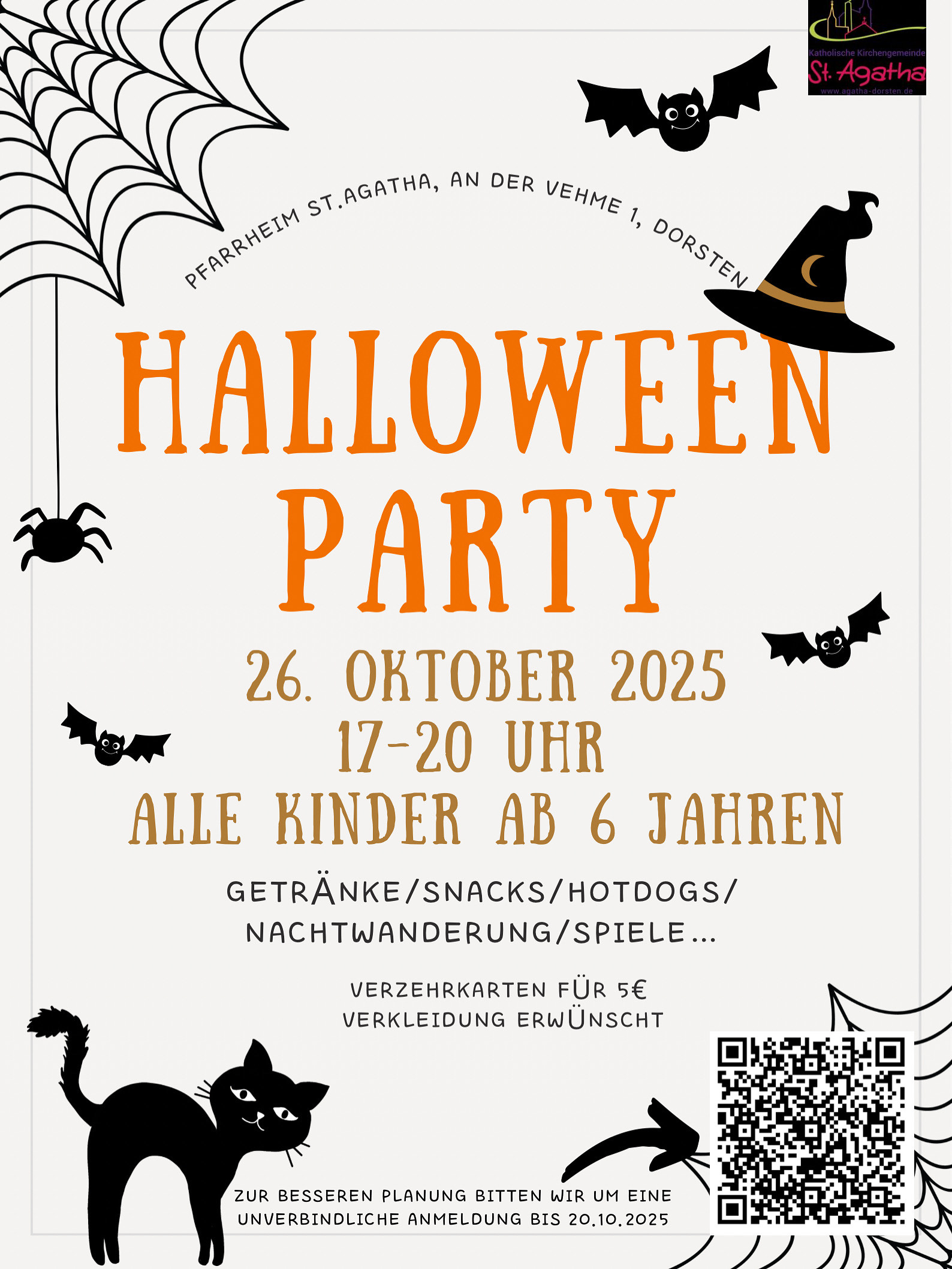 Die Messdiener-Leiterrunde lädt Kinder ab 6 Jahren ein – es wird gruselig, spannend, gesellig und lecker im Pfarrheim St. Agatha.